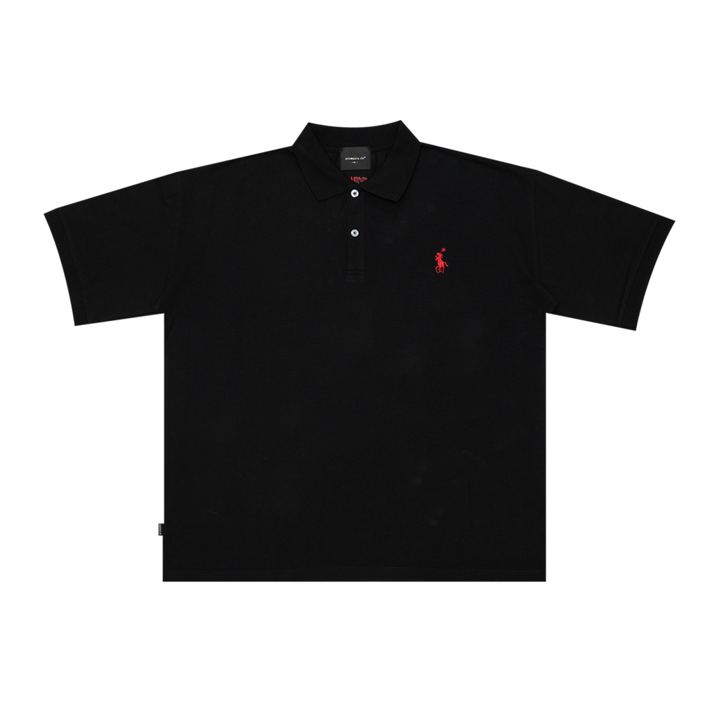 Built on a classic polo design with the signature Stoned Dark Horse Polo Logo. This piece reflects elegance, discipline and confidence. Black grounds the look with depth and versatility. The oversized silhouette refreshes the classic form. Relaxed, modern and keeping the streetwear vibes. Old rules, new design.