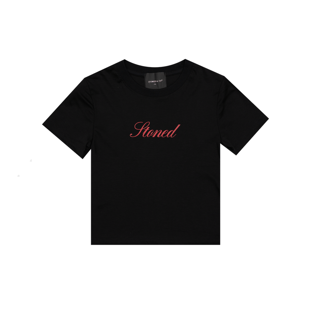 Made for our Stoned Bae. The cursive Stoned logo sits cleanly at the front. Simple yet striking, letting the wearer stand out naturally. Sleek black, versatile and effortlessly street-ready. This crop top blends modern edge with subtle attitude. Minimal style, maximum confidence. Own your street now.