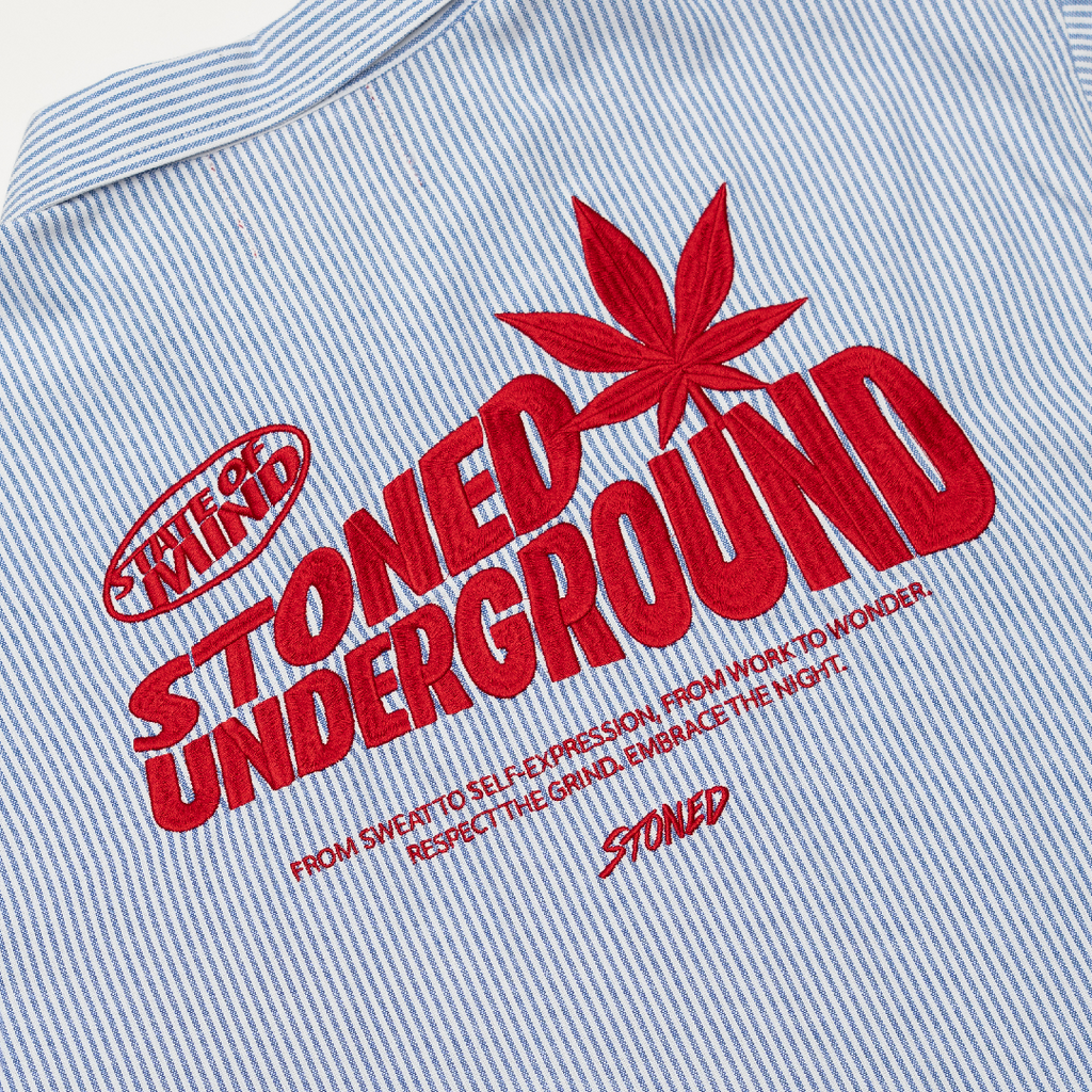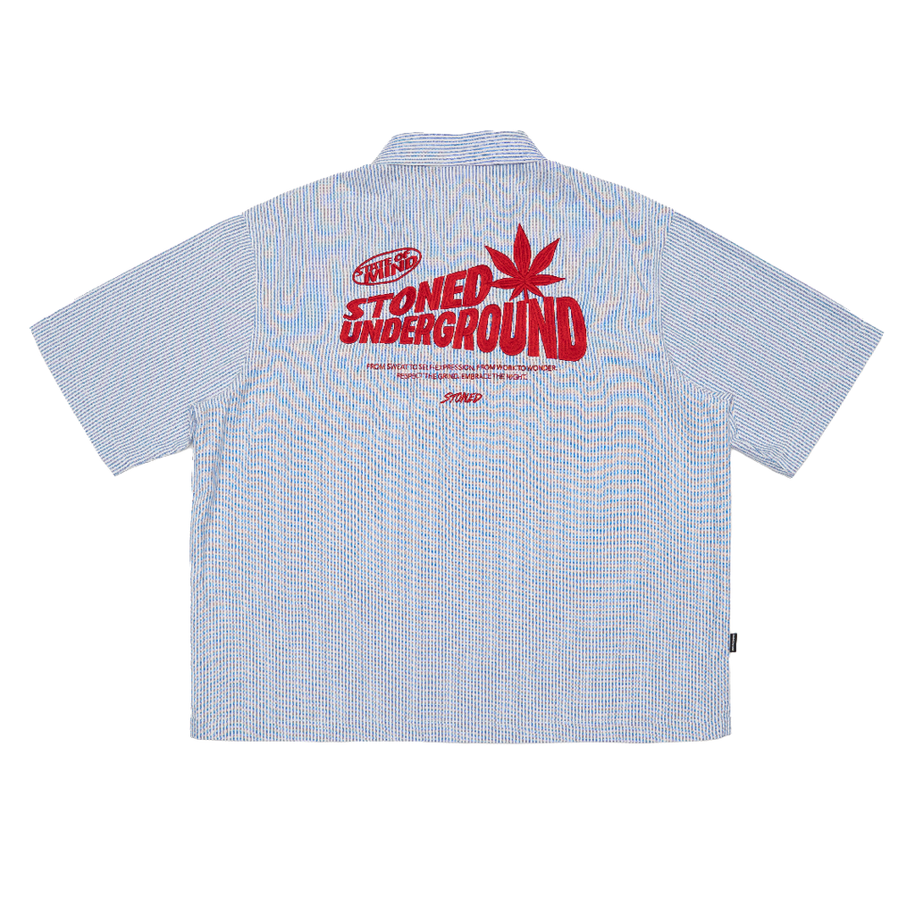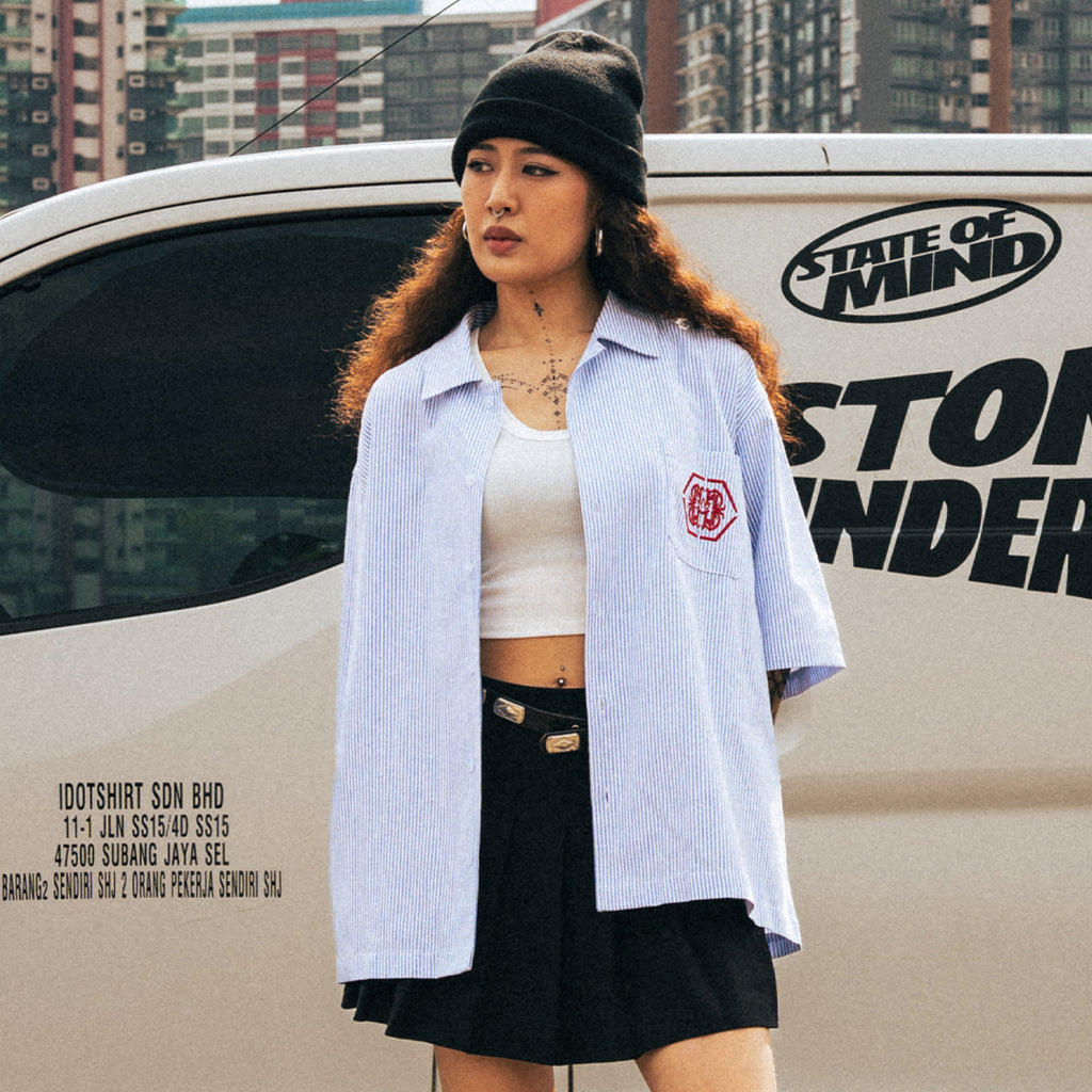 Made for those who like to blend streetwear with a more formal look. Clean from the front, easy to style and sharp enough for everyday wear. The blue stripe base keeps it calm and polished. Turn around, and the energy changes. A heavy graphic at the back brings back the streetwear attitude. Balanced, clean, bold. For those who move smart but stay rooted in street culture. A modern take on streetwear, without losing the vibe.