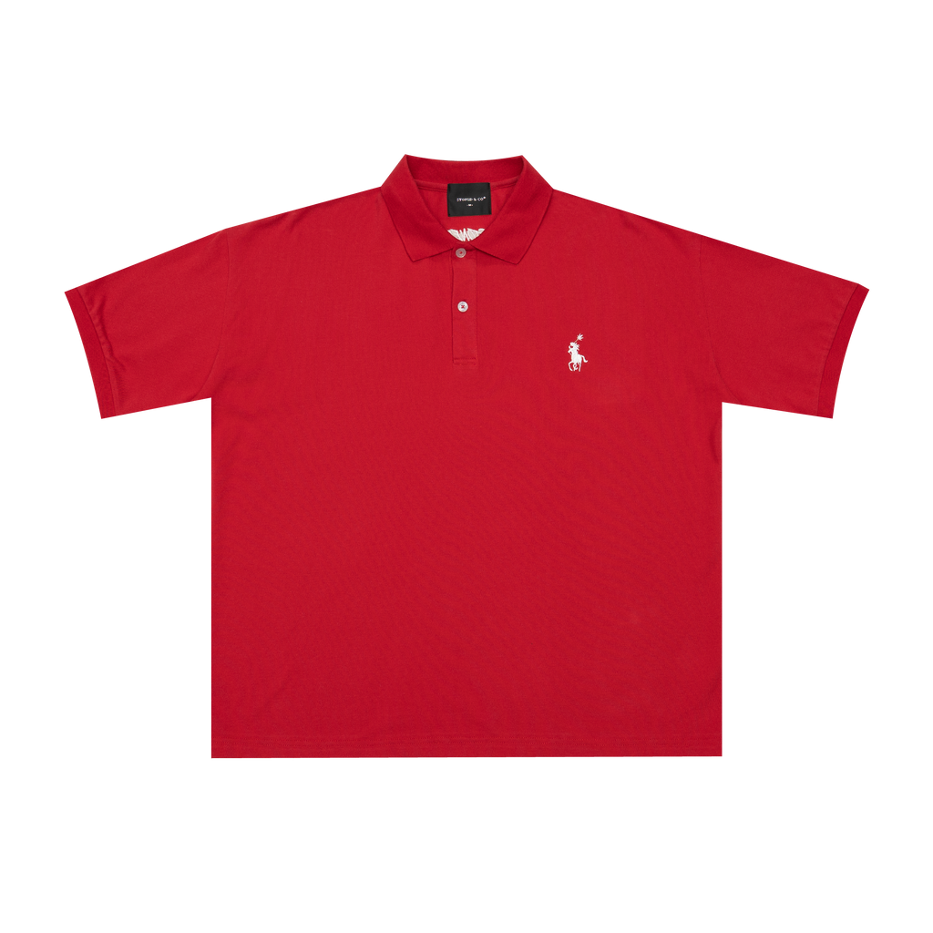Classic roots with bold presence that brings timeless polo heritage into the modern streetwear space. Designed with a classic polo structure and paired by the special Stoned Dark Horse Polo Logo, this piece carries a sense of prestige and tradition. The red base adds confidence and energy. A colour long associated with power, passion, and celebration. Finished with an oversized cut, the silhouette breaks away from formality, giving the classic look a new vibe.