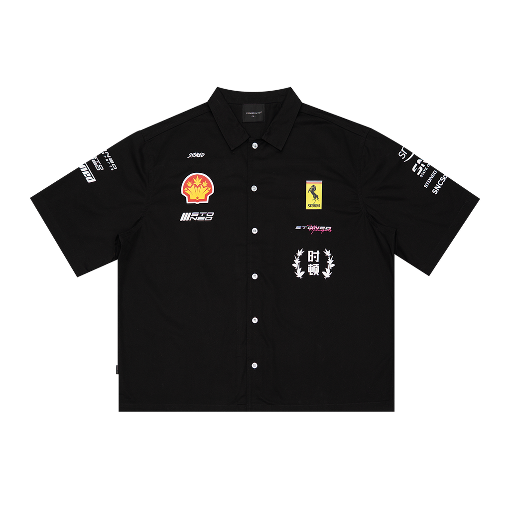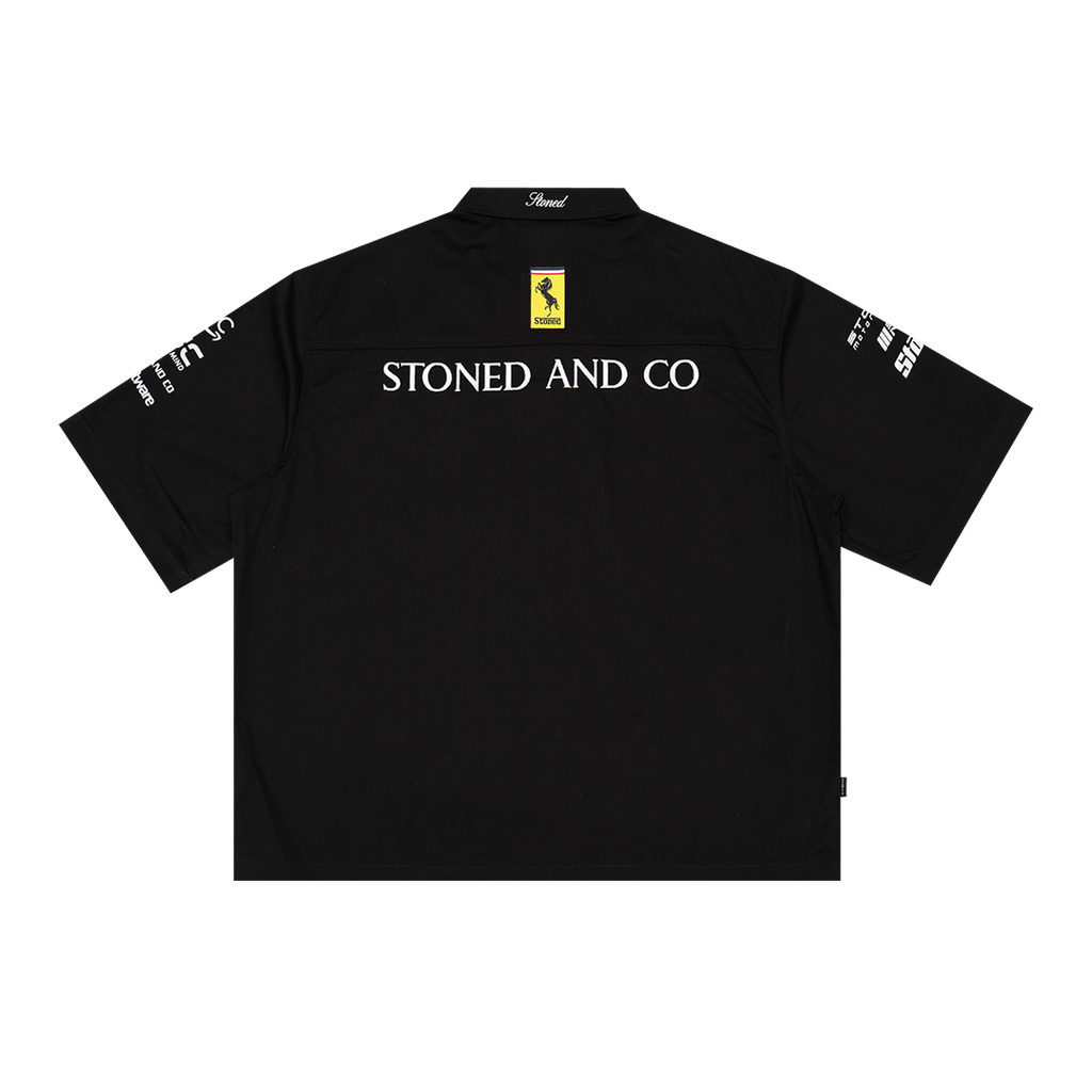 Engineered for the streets. Tuned for impact. Brings motorsport heritage into a darker, more controlled lane. Featuring all-over racing logos and sponsor-style graphics, this workshirt reflects the authentic DNA of motorsport. Reimagined with Stoned & Co.’s own twist. Every detail speaks speed and precision, but with a refined and street-ready execution. Performance aesthetics, redesigned in our language.